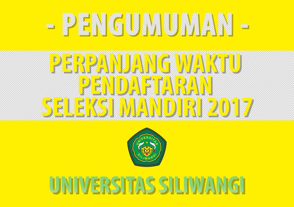 Panitia Penerimaan Mahasiswa Baru Seleksi Mandiri 2017 Universitas Siliwangi, telah mengumumkan secara resmi bahwa Waktu Pendaftaran, Pengisian dan Pembayaran Biaya seleksi DIPERPANJANG sampai dengan hari Senin, 10 Juli 2017. Terima Kasih. TTD Panitia PMB Unsil (Humas Unsil) Post Views: 202