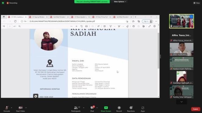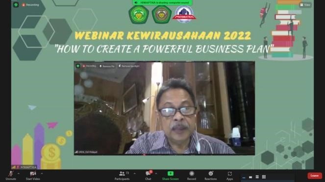 Program kerja Webinar Kewirausahaan 2022 dengan tema “How to Create a Powerful Business Plan.” Dilaksanakan pada tanggal 28 Mei 2022 Melalui kegiatan ini, mereka berusaha meningkatkan pengetahuan dan pemahaman mahasiswa Pendidikan Matematika tentang pentingnya business plan dalam dunia wirausaha.